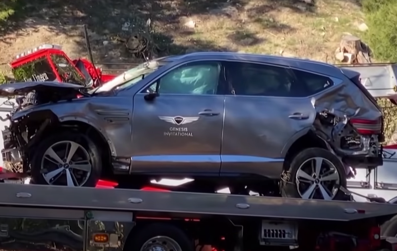 우즈가 탄 제네시스 GV80은 반대편 차선을 넘어 연석과 나무를 들이 받은 후 여러 차례 뒹굴은 것으로 파악된다. 사고 당시 처참한 모습을 알 수 있는 것이 차량 전면부가 완전히 파괴된 것이다. 이 사고로 우즈는 중상을 입었지만 치명상은 피했다고 한다.